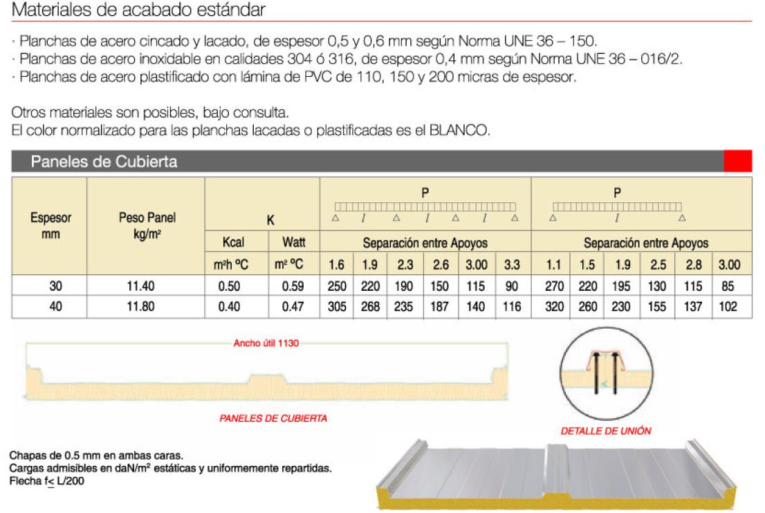 Espesores: 30, 40, 80 mm. Ancho útil 1.130 mm.